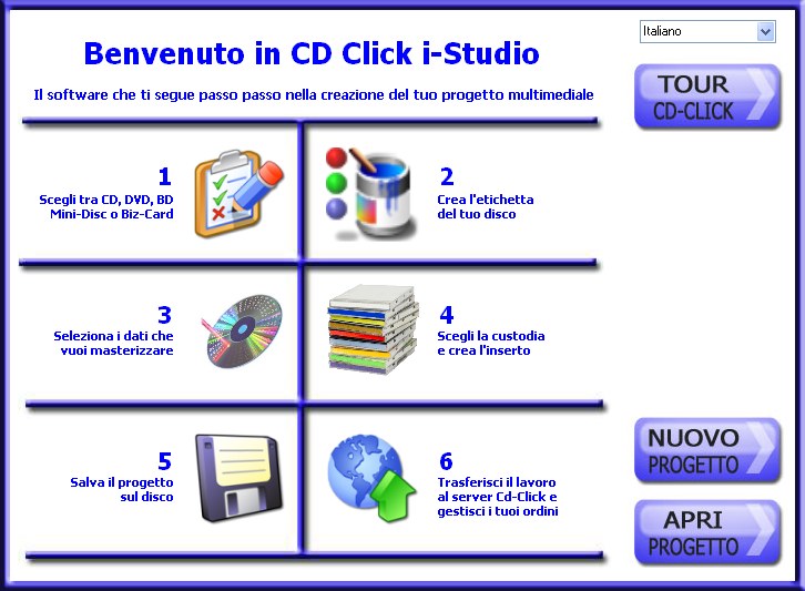 creazione di un progetto partendo dalle prime fasi, o Apri Progetto per caricare un progetto precedentemente salvato da utilizzare